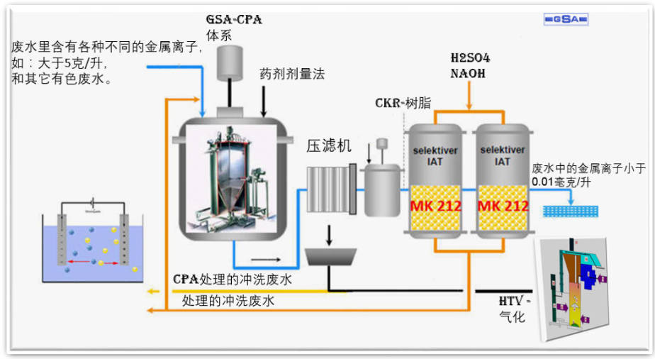 在金属混排废水中分离金属很难,但GSA的工艺可以结合CPACKR组合处理金属,