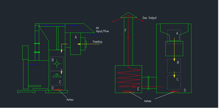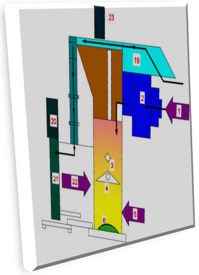 Im Bereich (3) wird der Abfall gezündet und brennt. Der nächste Schritt ist die