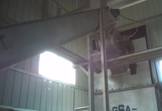 unten im Bild die Befüllung des HTVs mit Abfall--die Schnecke fördert den Abfall